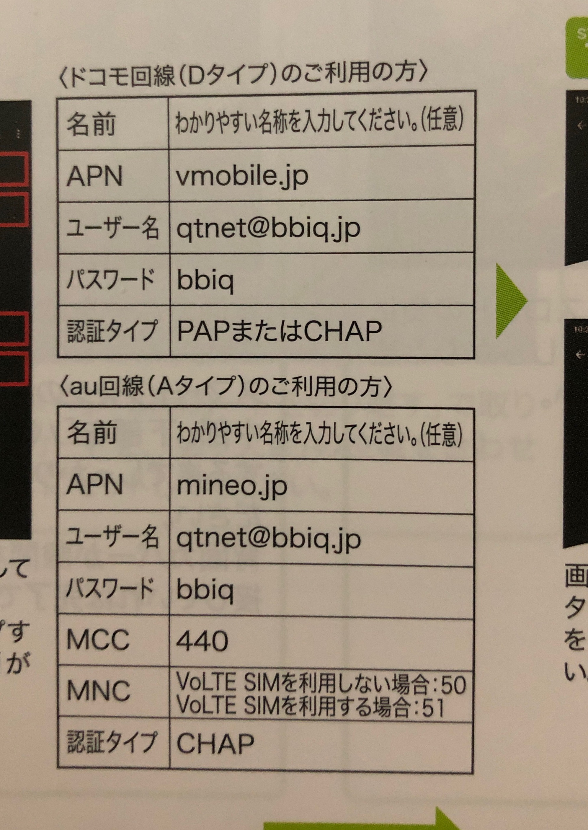 그래서 유심을 끼웠더니, 로밍이 안 잡힌다는 이야기가 있습니다. APN 설정을 안 한 것으로 추정되는데, 안드로이드의 경우 모바일 네트워크 설정에서 엑세스 포인트를 지정해주어야 합니다. 도코모망이면 사진에서 위의 표, AU망이면 아래의 표를 참고하면 됩니다.