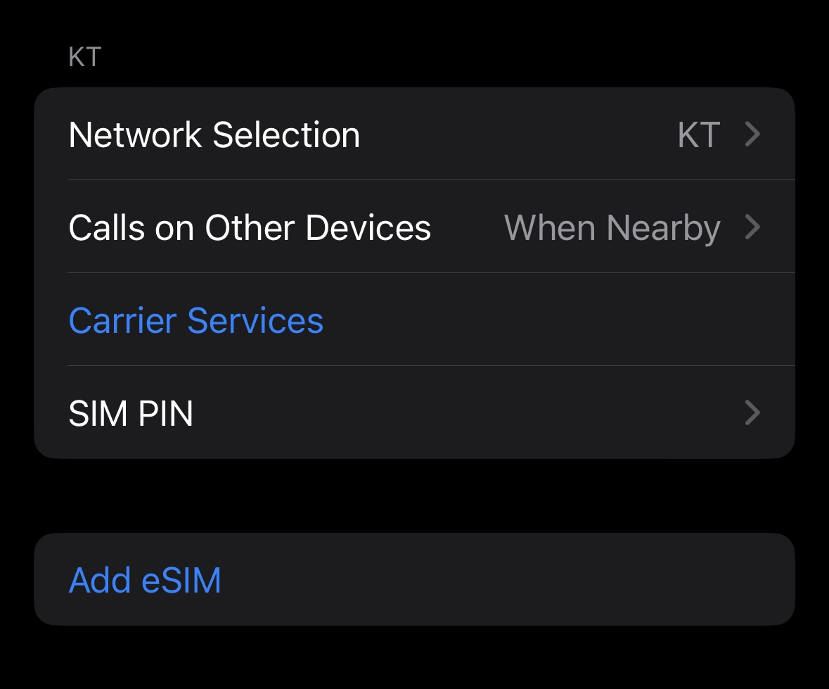 - eSIM으로도 개통이 가능함