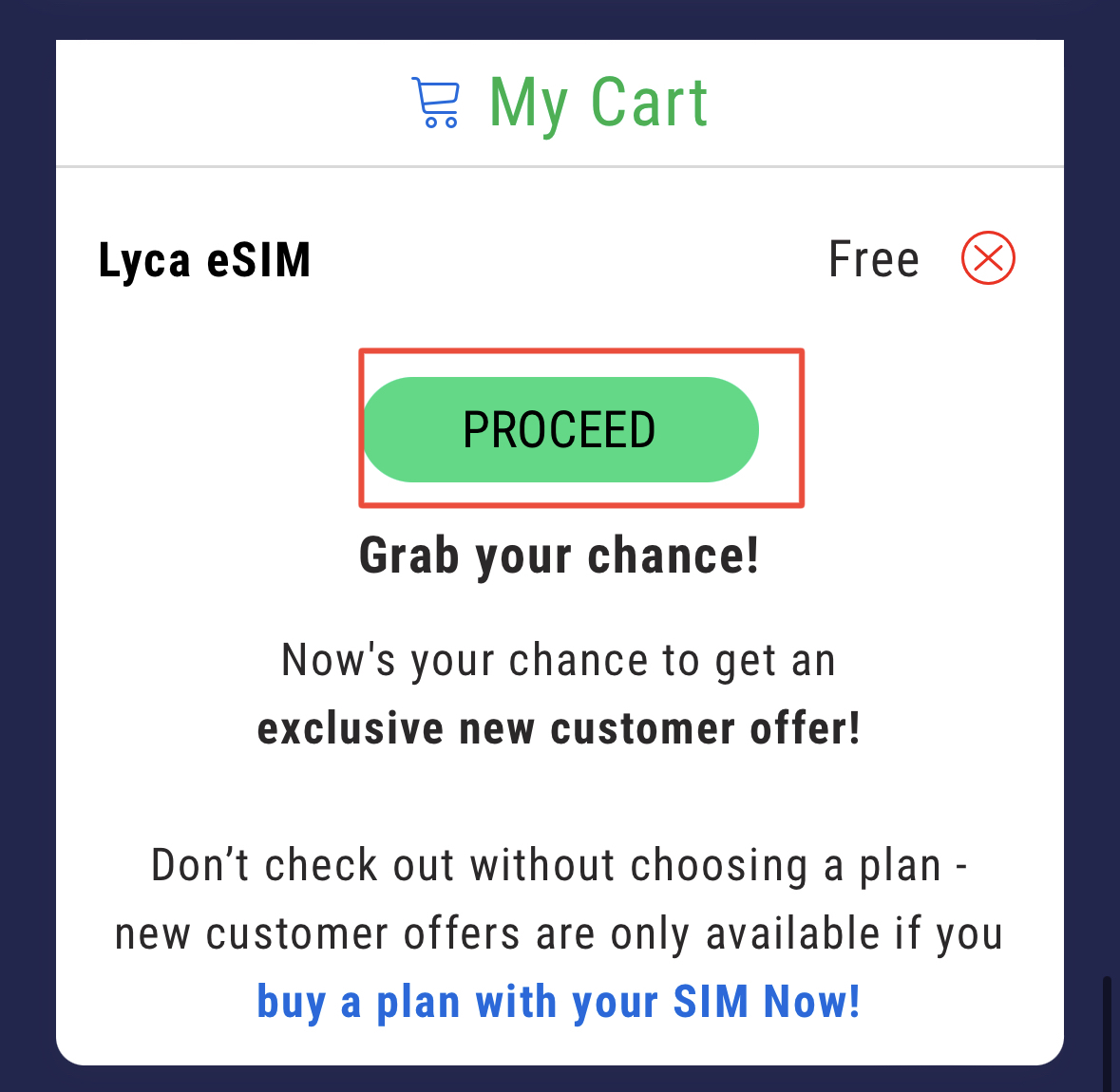 GET FREE SIM 버튼을 클릭합니다.