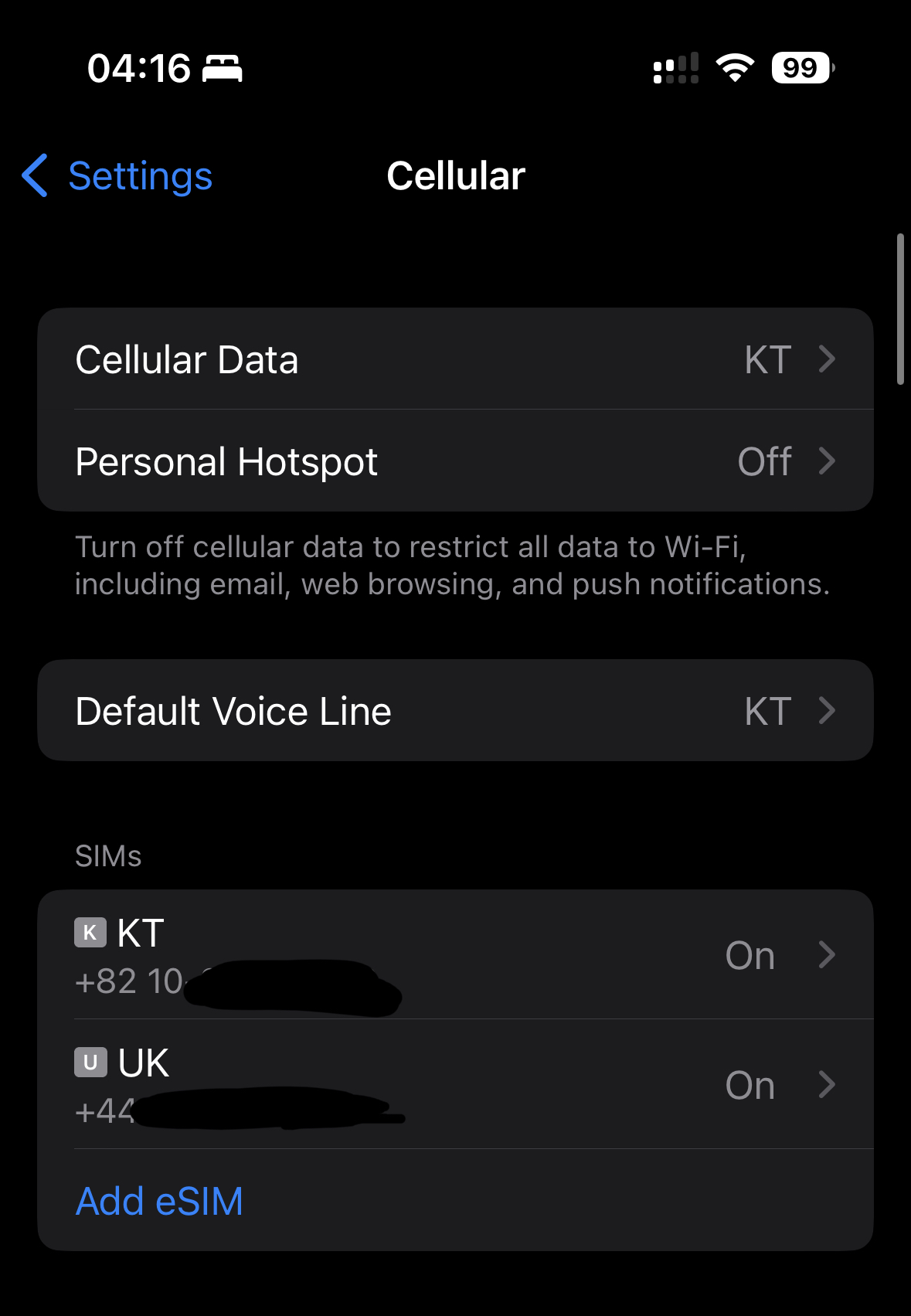 아이폰 기준 휴대폰 설정 > 셀룰러로 들어가면 eSIM 추가 버튼이 있습니다. 해당 버튼을 터치한 후, 안내에 따라 아까 본 QR코드를 스캔해줍시다.