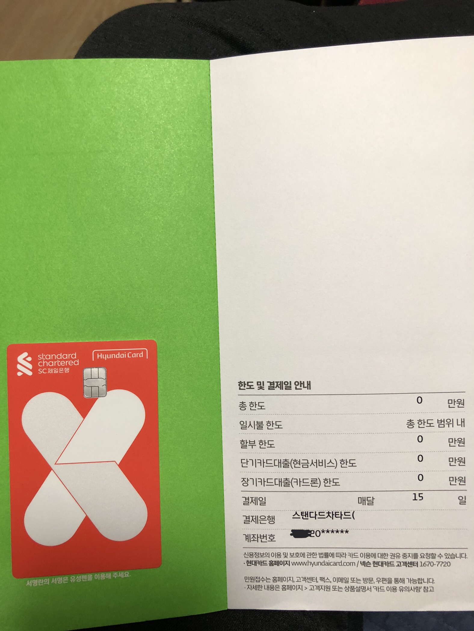 오늘 현대카드가 SC제일은행과 제휴하여 신용카드와 체크카드를 출시했습니다. 제휴상품이기 때문에 SC제일은행 계좌로만 결제계좌를 지정할 수 있습니다.