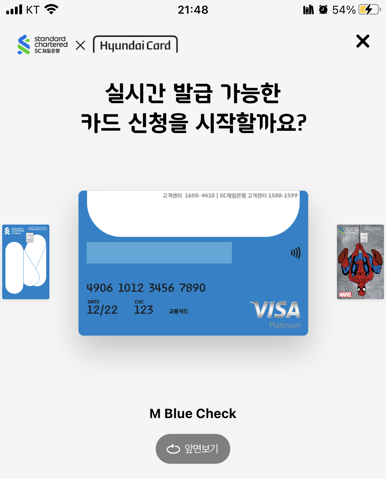 저는 학생이기 때문에 SC제일은행-현대카드 X CHECK 상품을 신청했습니다. 적립률은 M CHECK가 더 높지만 M포인트 1단위와 X캐시백 1단위의 가치 차이, M포인트 사용처 등을 고려하여 X CHECK로 하였습니다.